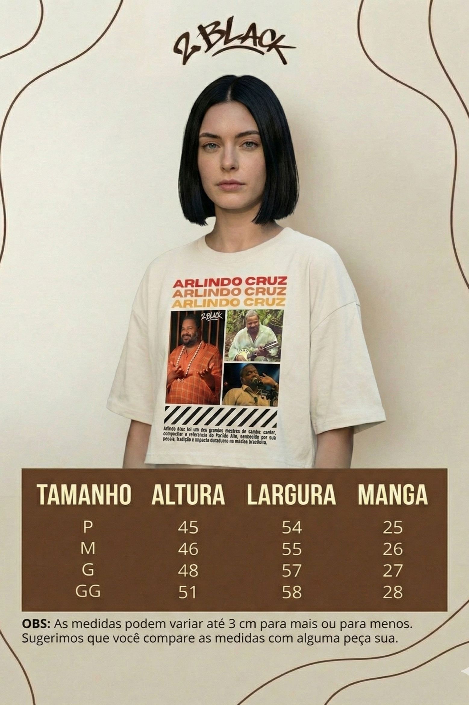 O Cropped Soweto – Farol das Estrelas é pura nostalgia para quem viveu (ou queria ter vivido) a era de ouro do pagode romântico. A estampa é uma viagem no tempo, trazendo a formação clássica do grupo — com o jovem Belo nos vocais — em um design que celebra os hinos que embalaram tantos corações partidos e romances.